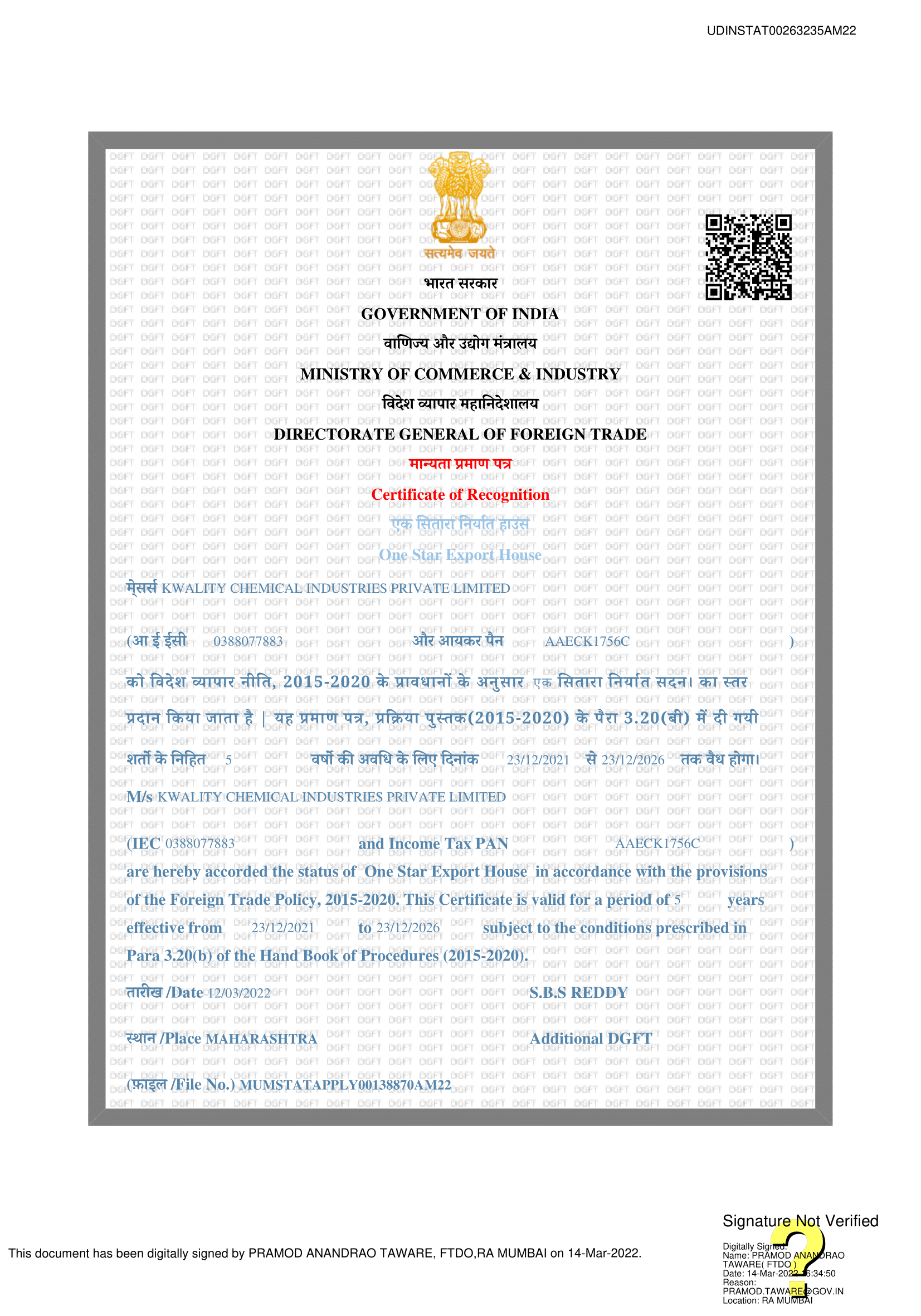 The company has been recognized by the Government of India as a Star Export House with its products being sold in the Americas, Africa, Middle East and South East Asia.